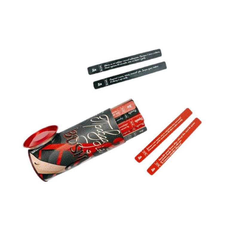 There are sticks in the jar, which the playing pair is invited to pull out in turn. If you pulled out the word "True", then get ready to answer the question, even if it is very hot! And if you pulled out "Action" - take action, but don't forget about the stop word!
