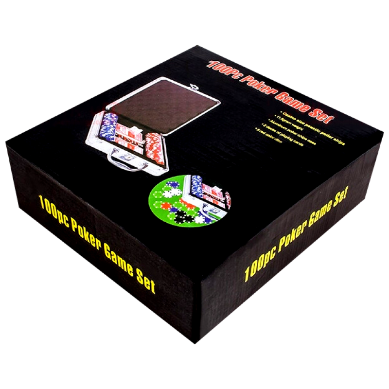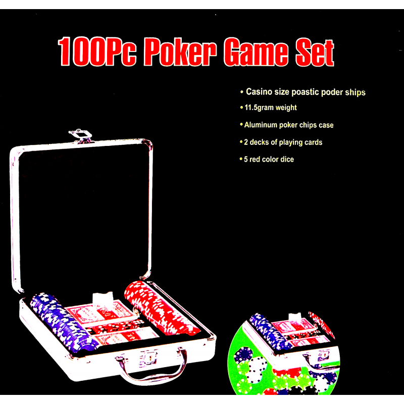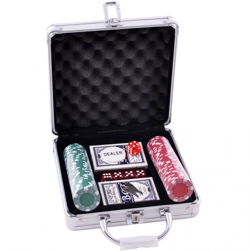 | Options | Aluminum case 100 plastic chips weighing 11.5 grams 5 six-sided dice 2 decks of poker cards 2 case keys Dealer chip |