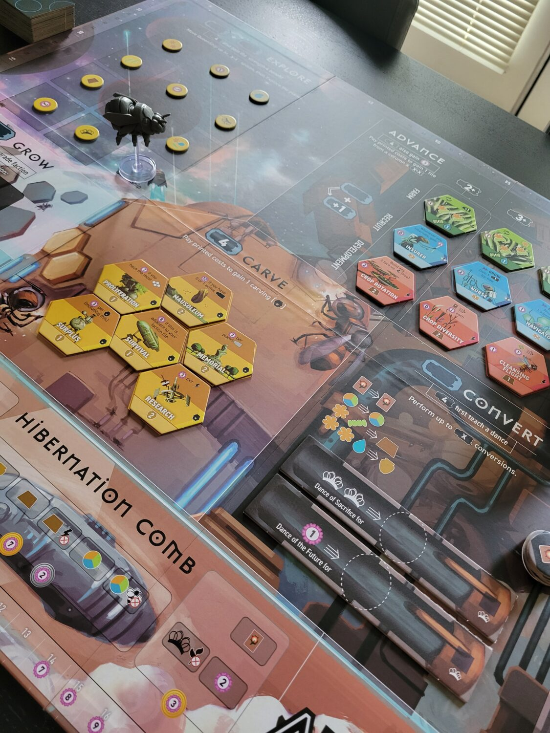 Games are tools that allow individuals and groups to think outside the box. So it makes perfect sense that Apiary, a board game about space bees, uses cutting-edge approaches to employment mechanics in gameplay. It combines high-tech worker placement with classic resource conversion mechanics — sometimes with obvious advantages, sometimes with disadvantages.