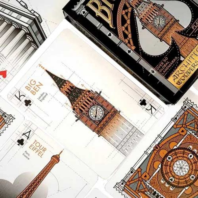 Золоті ворота в Сан-Франциско, пагода монастиря Якусідзі в Нара, відомий годинник Вестмінстерського палацу, Ейфелева вежа — чи так багато у світі шедеврів архітектури, справжніх чудес, дивлячись на які хочеться кричати від захоплення або, завмерши, впадати в трепет від величі, що нас охоплює? На цих гральних картах зібрано усе найбільш вартовне з того, що створили людські руки.