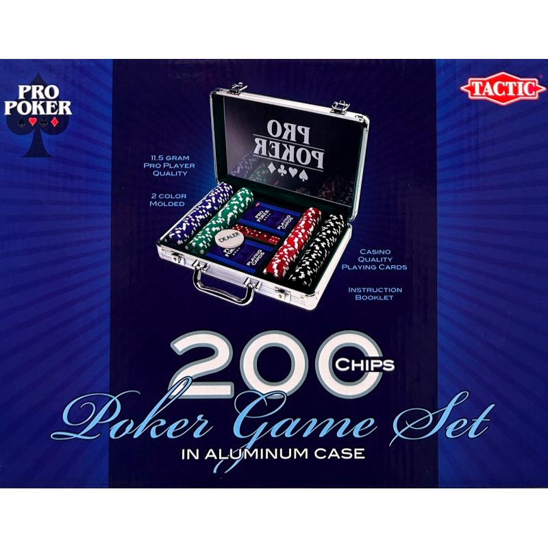 Все необхідне для гарної гри зберігається в атмосферному алюмінієвому кейсі, що має відомий дизайн по безлічі сцен різних кримінальних фільмів. Вже це безперечно налаштує вас на азартну гру, повну хитрощів та спокус. Усередині ви знайдете 200 стандартних фішок, 2 колоди гральних карт найвищої якості, фішку дилера та п'ять гральних кісток. Цього більш ніж достатньо для прекрасного вечора в колі цінителів покеру. Не важливо, новачок ви чи завсідник карткових партій — ви безсумнівно отримаєте щире задоволення від якісних ігрових елементів ProPoker Case 200, випущених компанією Tactic.