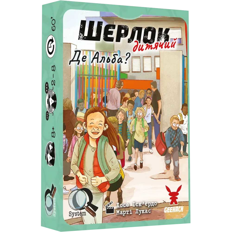 Це гра для тих, хто не на жарт мріє стати справжнім детективом! «Де Альба?» — перша справа у дитячій серії «Шерлок», спеціально адаптована для маленьких гравців. Вона спонукає мислити уважно, формулювати здогадки, співпрацювати з іншими та відсіювати зайве. Має полегшені правила й підрахунок очок. Розв’язавши цю справу, ви також можете дослідити решту дві гри цього випуску: «Собачі справи» й «Загадкове зникнення Суріґурі». Якщо ж ця коробка — ваша першенька, нехай вона стане ідеальним початком кар’єри!
