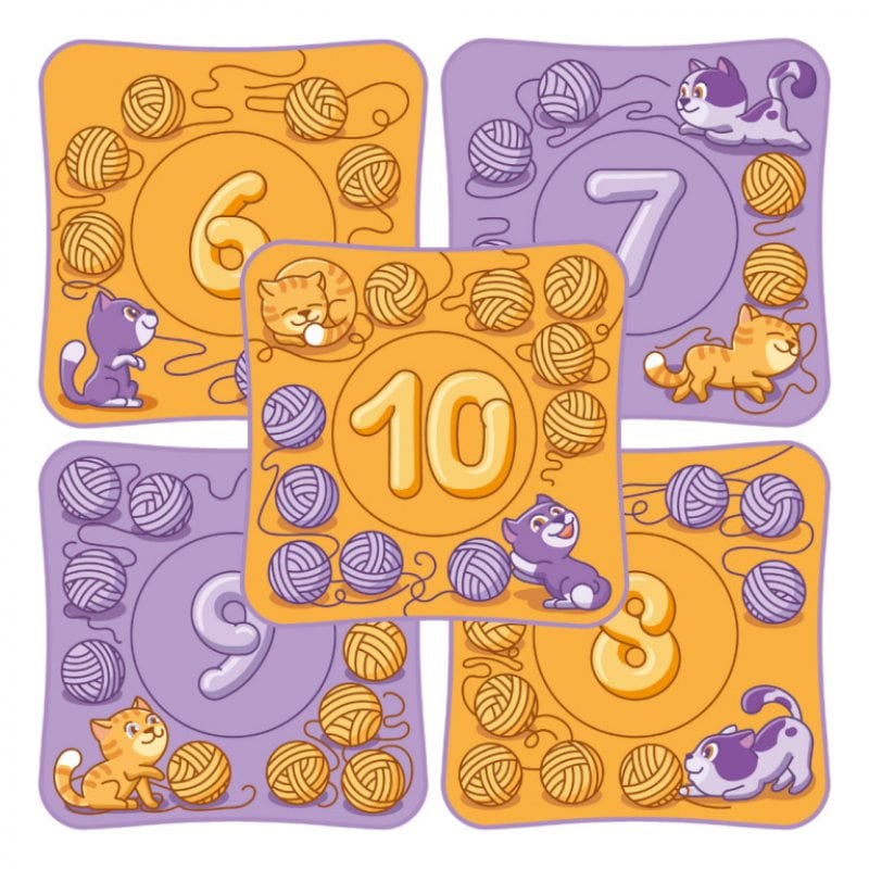 На стіл викладають планшети з числами 1–5. Поруч кладуть 15 вільних клубочків. Гравці по черзі накривають один відкритий клубочок на будь-якому планшеті та озвучують дію в стилі котиків: «Няв, клубочок я поклав».