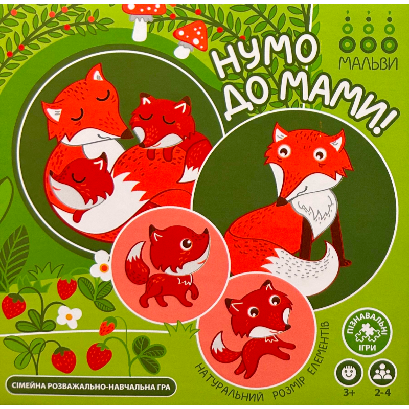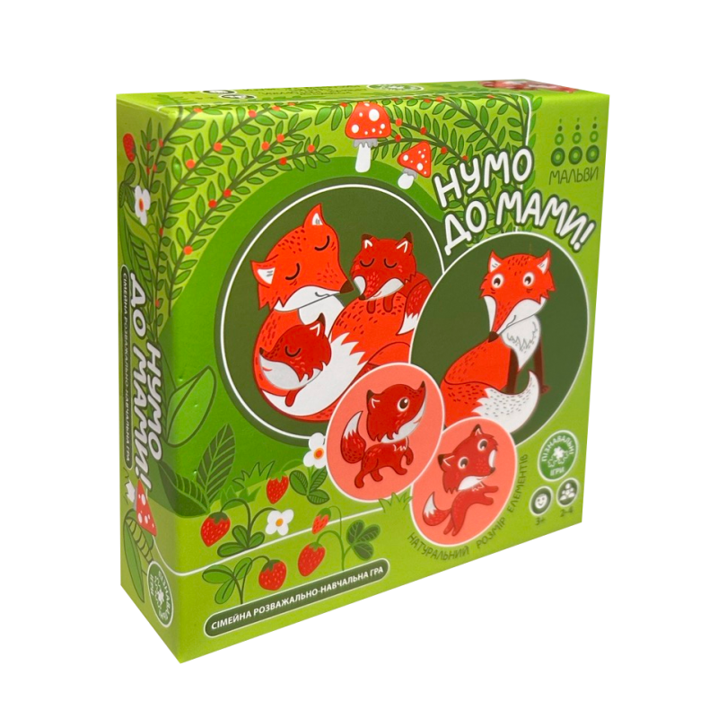«Нумо до мами!» — це набір з 4 ігор для малюків від 3 років, що допоможе познайомити їх з різними тваринами та їх середовищем. Ці ігри розвивають увагу, пам’ять, мислення та дрібну моторику, а також допомагають вивчати перші числа.
