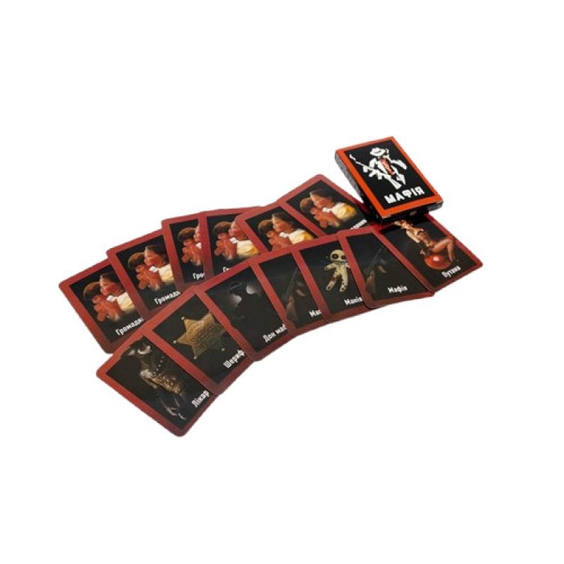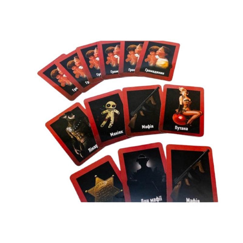 | Комплектація | 1 карта "Дон мафії", 2 карти "Мафія", 1 карта "Шериф", 6 карт "Мирний житель", 1 карта "Маніяк", 1 карта "Доктор", 1 карта "Путана". |