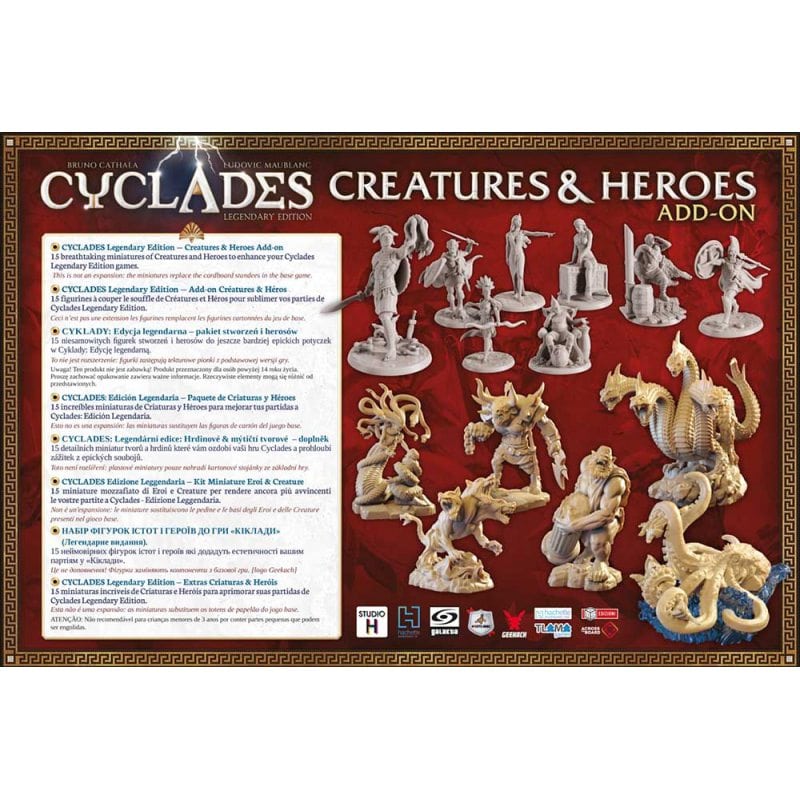 Доповнення «Кіклади: Легендарне видання — Монстри і герої» зробить вашу гру більш довершеною і естетично привабливою — бачити і відчувати чудовиськ значно цікавіше, ніж просто уявляти! Додайте також «Кіклади: Легендарне видання — Загони і флот», щоб прикрасити свою античну війну ще більше!