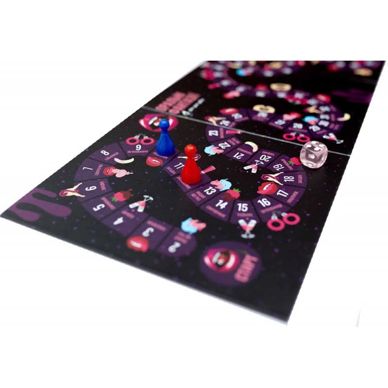 | Комплектація | ігрове поле; фішки і кубик; інструкція до гри; картки для вікторини; стрічка-пов'язка; їстівний лубрикант JO. |