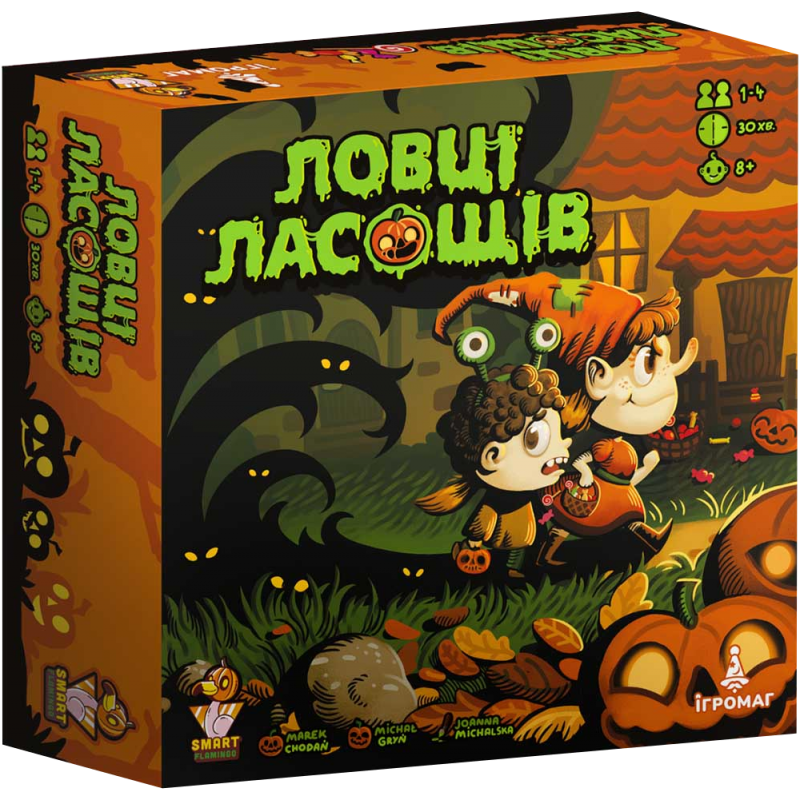 Гарбузові ліхтарики блимають у темряві, діти біжать сусідськими вуличками, а пустотливі привиди вже чатують, аби зіпсувати ідеальний план наповнення торбинок різними смачними штуками. «Ловці ласощів» — це бешкетна абстрактна настільна гра, що одразу запроторює вас у самісіньке серце геловінської ночі, де ви зможете явити світові свою стратегічну майстерність!