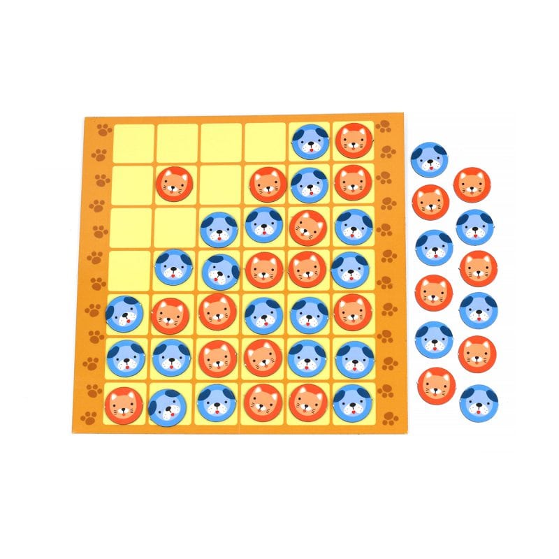 «4 в ряд» — це динамічна настільна гра для двох гравців, у якій учасники по черзі опускають фішки свого кольору в вертикальну решітку, намагаючись першими скласти безперервний ряд із чотирьох фішок по горизонталі, вертикалі або діагоналі. Гра розвиває логічне мислення та вміння планувати наперед, адже для перемоги потрібно не лише створювати власні комбінації, а й своєчасно блокувати ходи суперника.