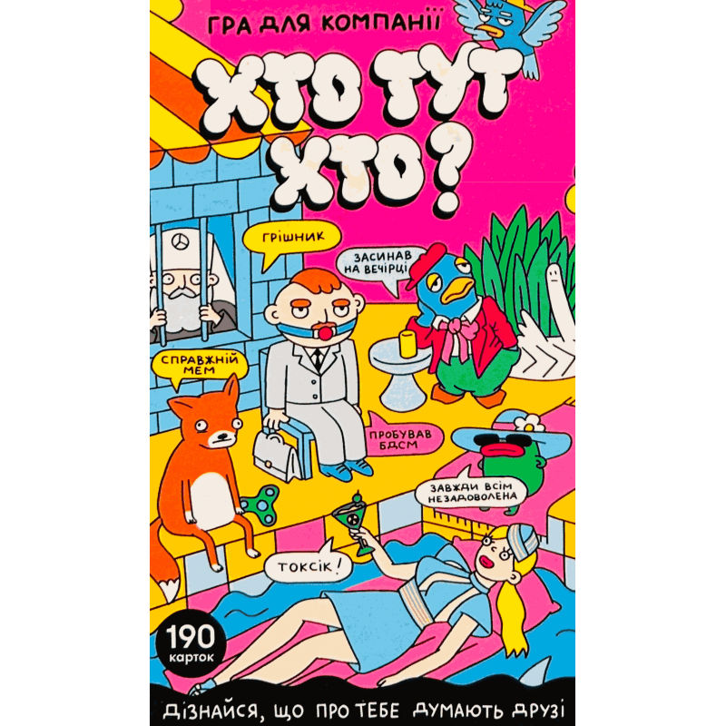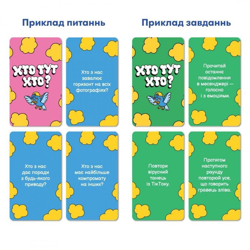 Завдяки своїй простоті та гумору «Хто тут хто?» гарантує нескінченний регіт і захопливі бесіди. Це не просто гра, це соціальний досвід, який викликає сміх, товариство й несподівані одкровення.
