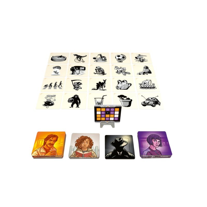 | Комплектація | 140 карт з 280 малюнками 14 плиток агентів двох кольорів 1 плитка подвійного агента 4 плитки мирних жителів 1 плитка вбивці 60 карт-ключів 1 книга правил 1 підставка для карт |