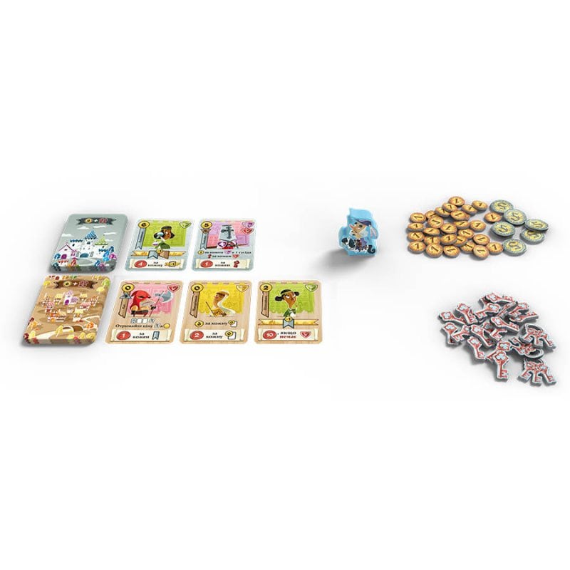 Комплектація | 78 карт 96 жетонів 1 дерев'яна фігурка посланця 1 книга правил 1 пам'ятка 1 блокнот для підрахунку очок |