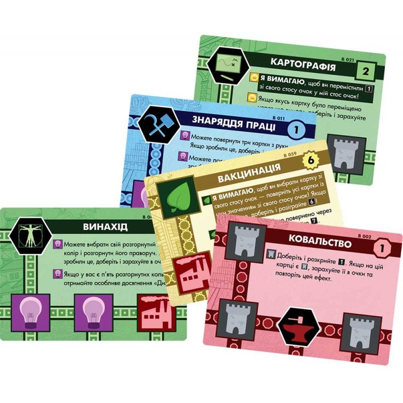 Гра «Інновація» й відома тим, що навіть одна картка може змінити геть усе. Хтось запускає ефект, який відбирає ваші здобутки, ще один змушує скинути половину цивілізації в непотріб — а ви думали, що можете передбачати наперед? Тож кожна партія буде мінливою, як і людська історія з її війнами, проривами й невдалими експериментами.