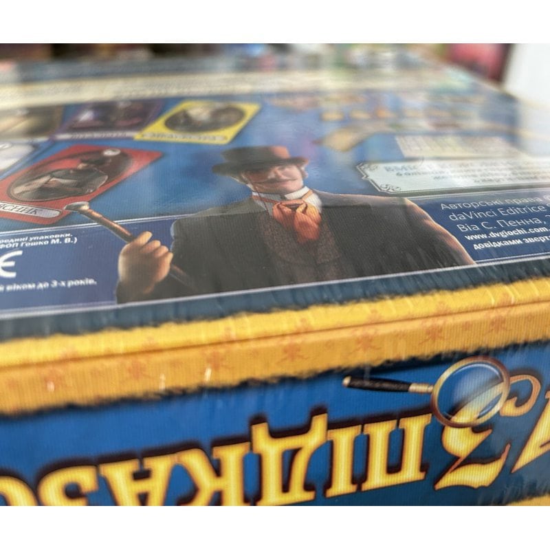 | Комплектація | 30 карт-підказок, 6 ширм, книга справ (блокнот), 8 жетонів лупи, 8 жетонів літер, 6 надсекретних жетонів, 2 карти-пам'ятки, правила. |