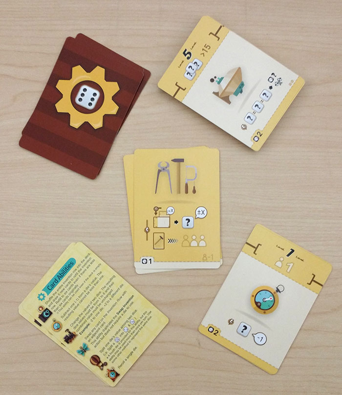 Проте, коли тобі вдається отримати нові карти Винаходів для своєї Лабораторії, гра стає цікавішою. Спочатку прогрес іде повільно, адже карт для використання небагато, але з ростом твоєї колекції Винаходів збільшуються й можливості. Якщо на початку гри у тебе є стартова карта Винаходу, яка дозволяє відняти 1 від значення одного кубика, то пізніші ходи дозволяють маніпулювати кубиками набагато винахідливіше.